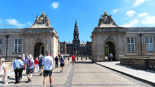 Today was our full day in Copenhagen. We woke to a lovely day and set out on a walking tour of the city with our great guide, Benny, who entertained us with stories about the city. Across the harbor, we could see the new Opera House, criticized by many for its modern appearance. In another direction was Christiania, a community of free-living "hippies" and others living an alternative lifestyle. We strolled through the King's Square, surrounded by buildings of white meant to reflect his love of France. (The French Embassy is one of these pretty buildings.) I enjoyed another walk up Strøget, the world's longest pedestrian street. Benny pointed out various places of interest - the churches, University, National Museum. We walked at a pretty brisk pace, so I wasn't able to note the names of some of the sites, but I'll identify as many as I can in the photos below.